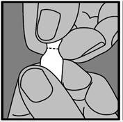 Poser le pouce sur le point (le point doit être tourné vers le haut)